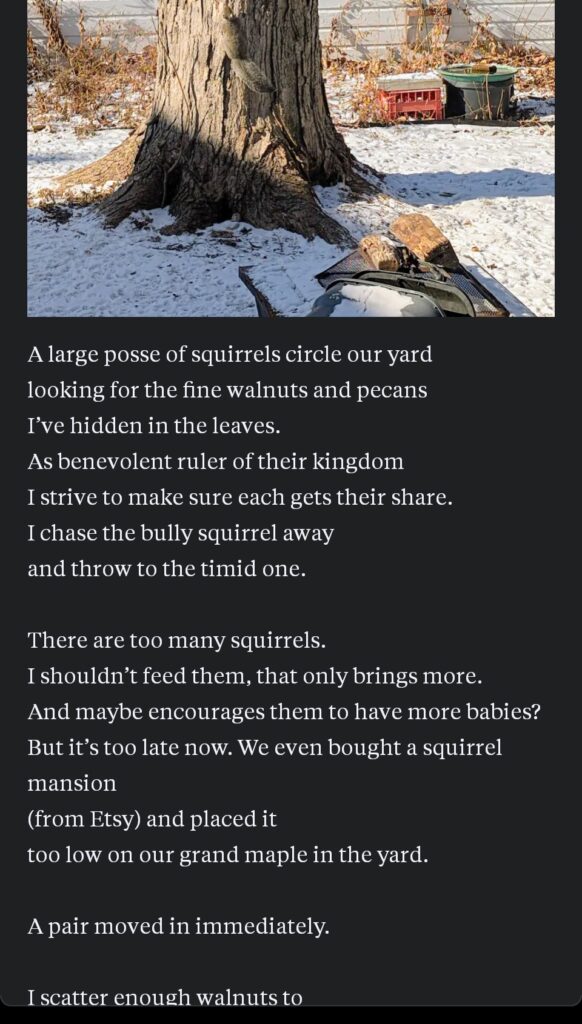 Imagine writing a poem every day? It is a profound spiritual practice that I’m beginning on Substack. Join me! You can add poems of your own or just use my daily poem as a divination tool toward your own daily reflections. Subscribing means a freshly written poem will be delivered straight to your email. So far, almost a week into this project, I’m feeling really excited by the vessel that is both a poem and the Substack platform. Thanks for checking it out!